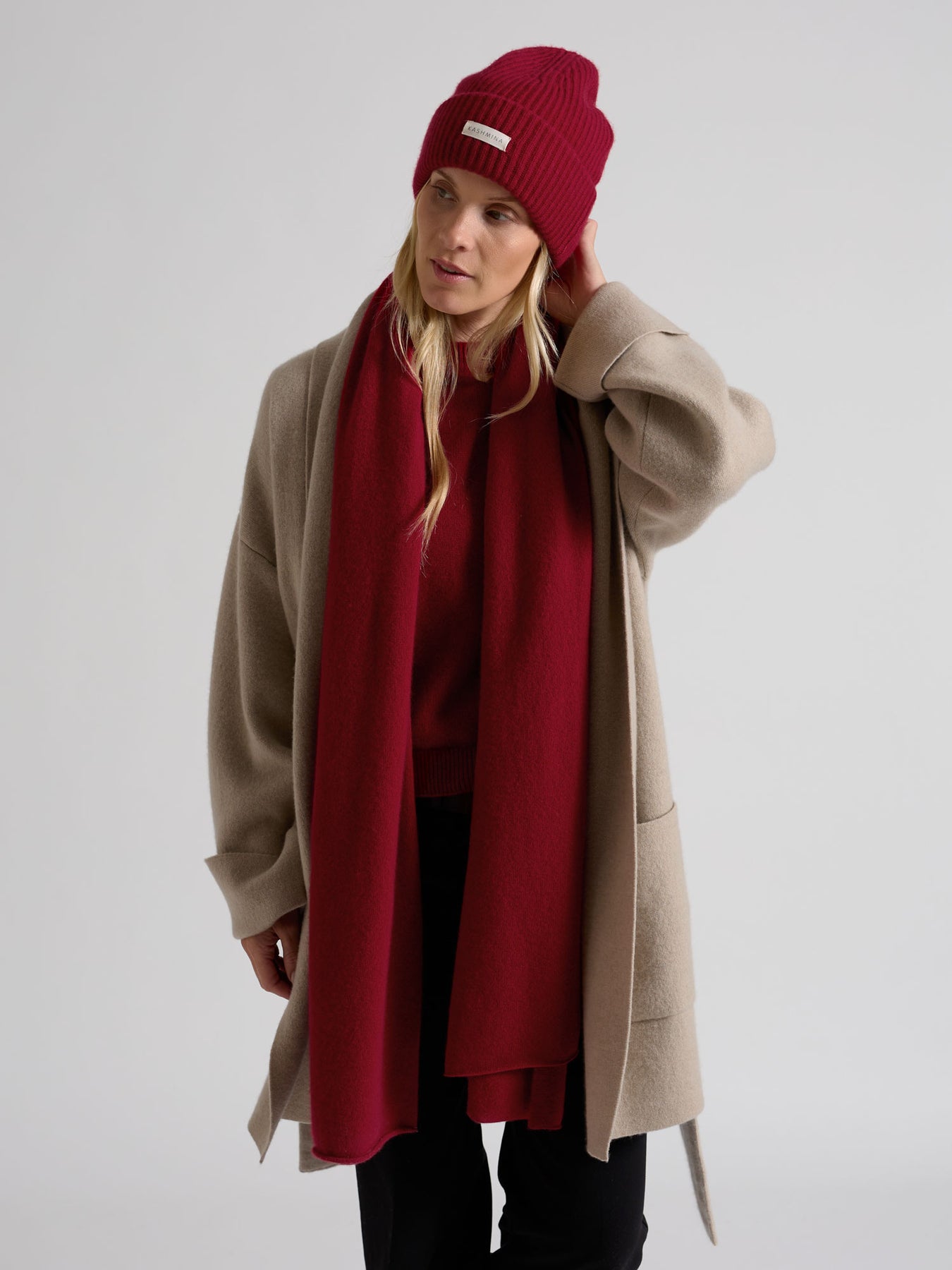 Cashmere beanie in 100% pure cashmere. Scandinavian design by Kashmina. Color: Aroma Red.