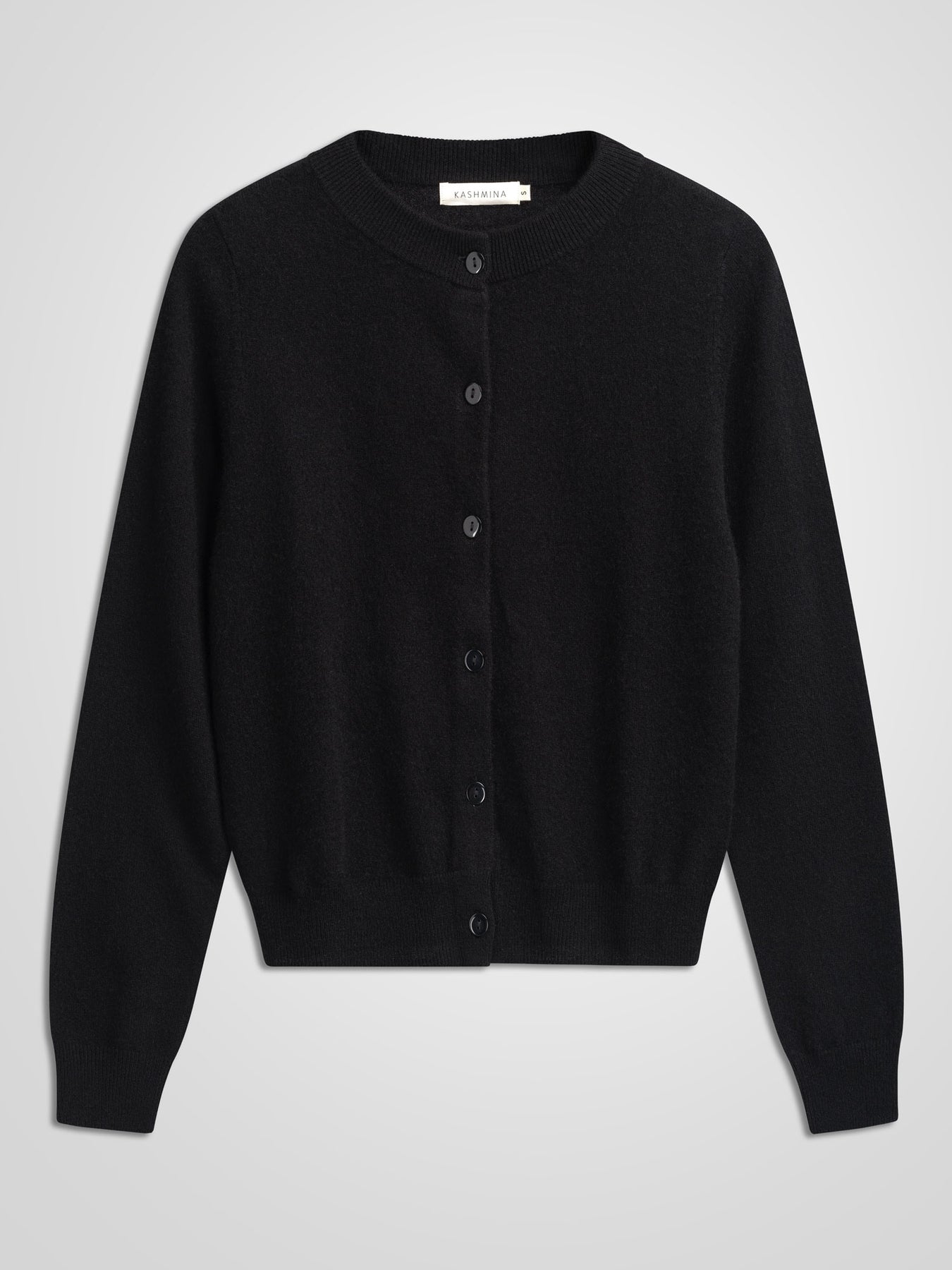 Cashmere cardigan "Ingrid" in 100% pure cashmere. Scandinavian design by Kashmina. Color: Black.,