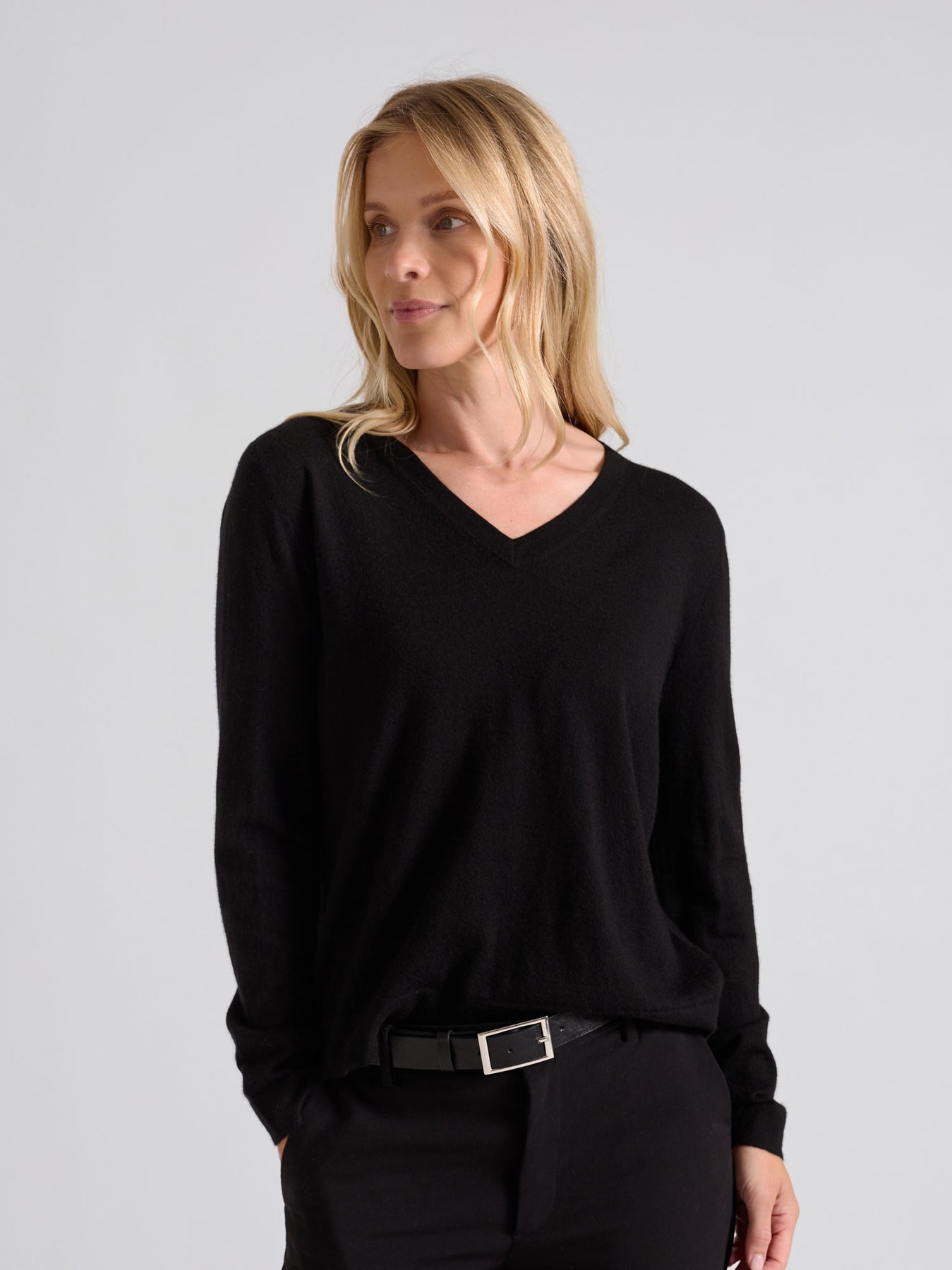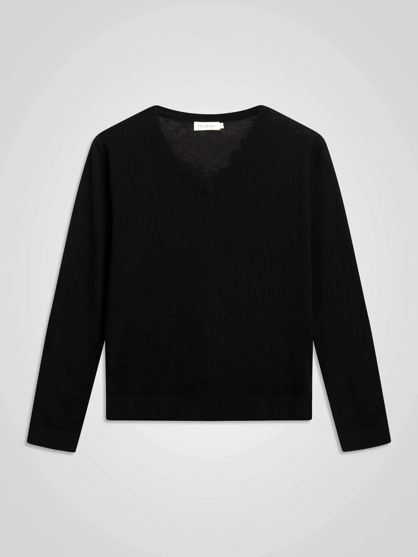 Cashmere sweater Aina, made from 100% pure cashmere. Scandinavian design by Kashmina. Color: Black.