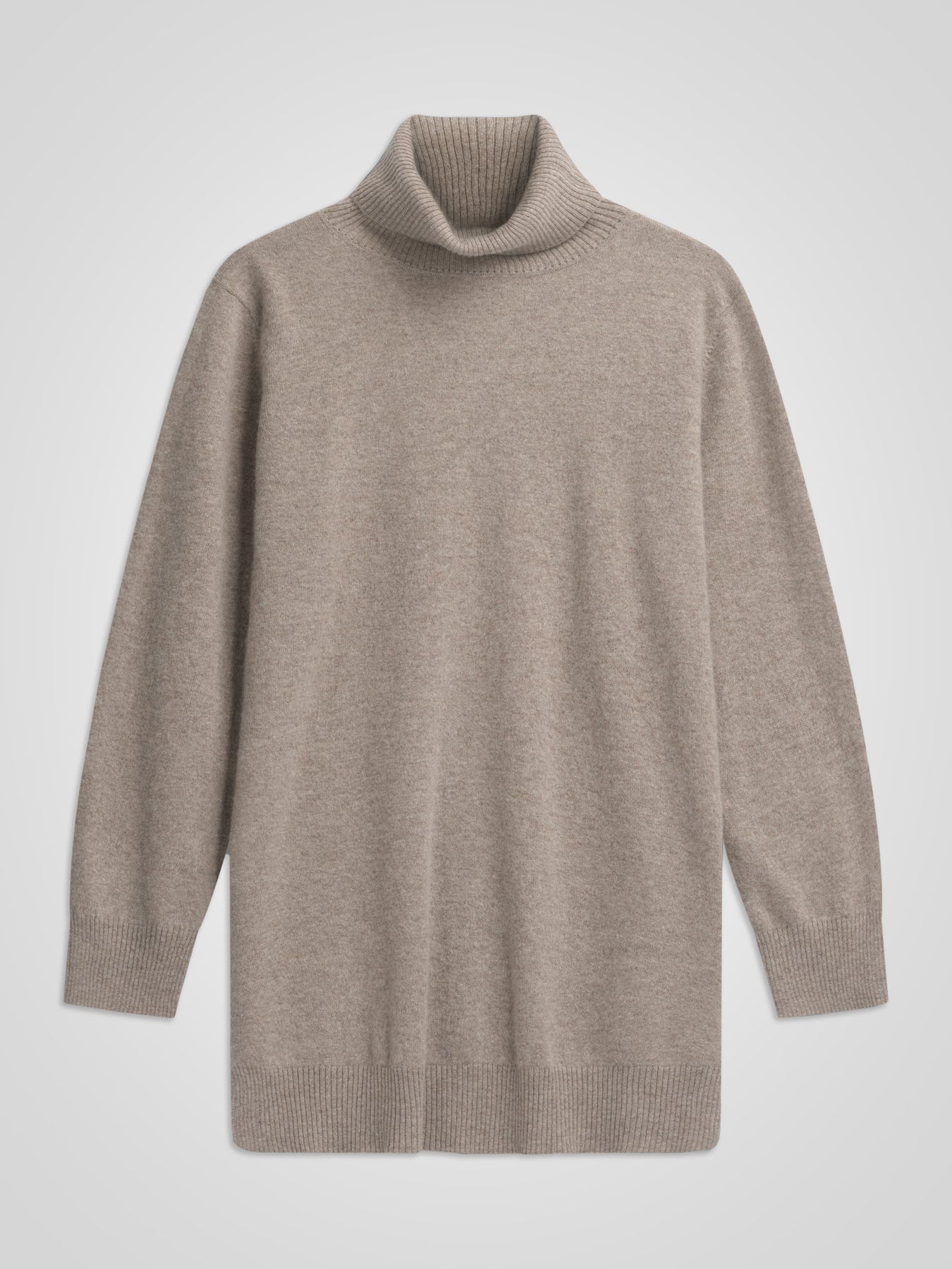 Lang høyhalset kashmirgenser i 100% ren kasjmirull. Norsk design fra Kashmina. Farge: Toast