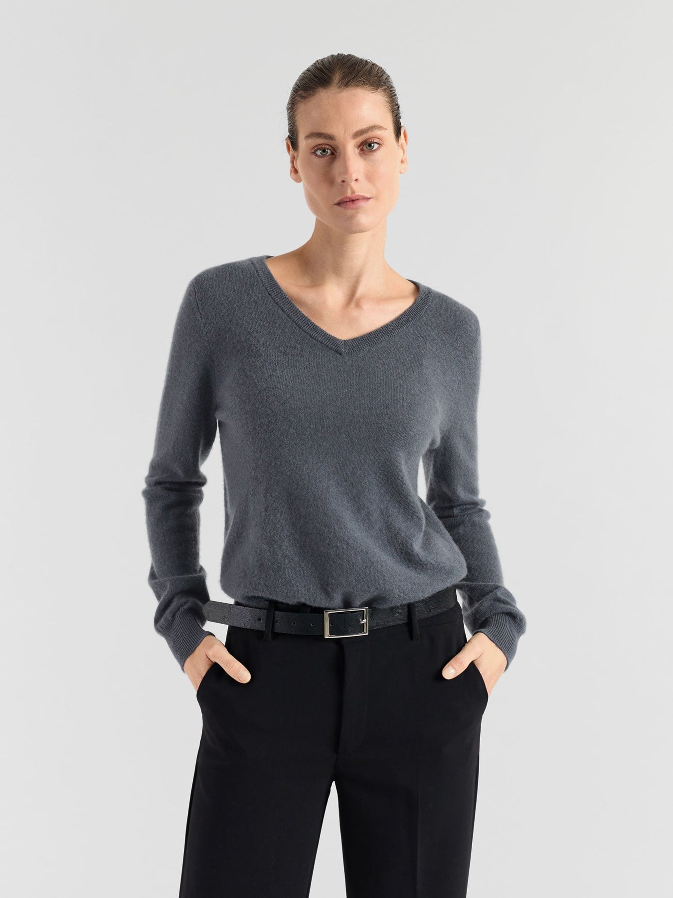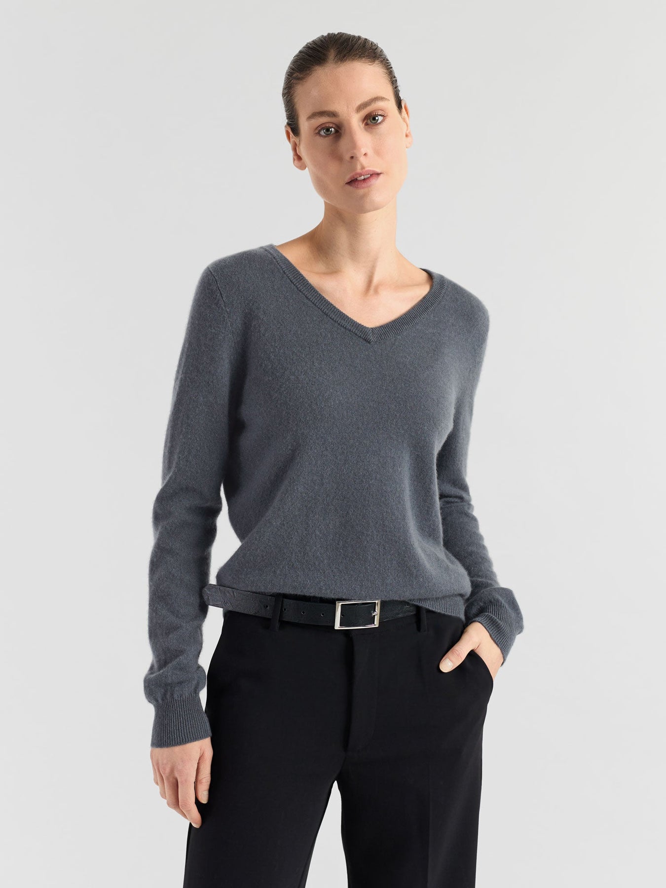 Classic v-neck sweater in 100% pure cashmere wool.