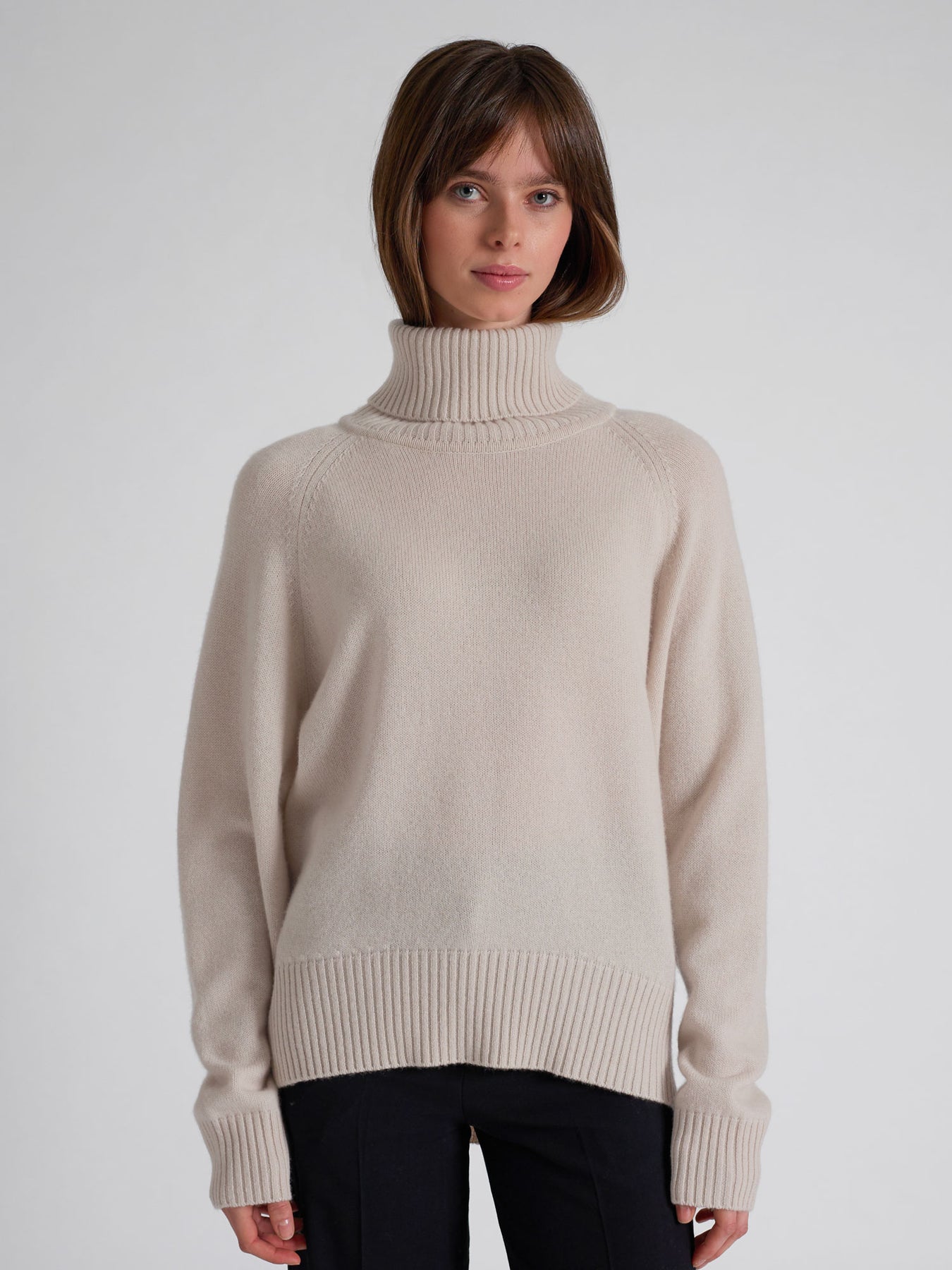 Oversized sweater with turtleneck. 100% pure cashmere and ribbed details. Milano is an oversized model, so we recommend sizing down if you are in between sizes.