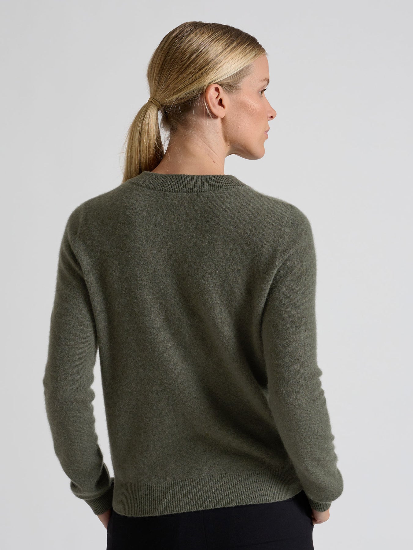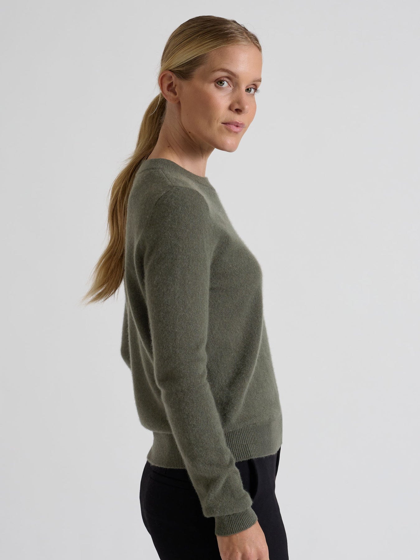 Cashmere sweater "Thora" in 100% pure cashmere. Scandinavian design by Kashmina. Color: Eucalyptus Green.