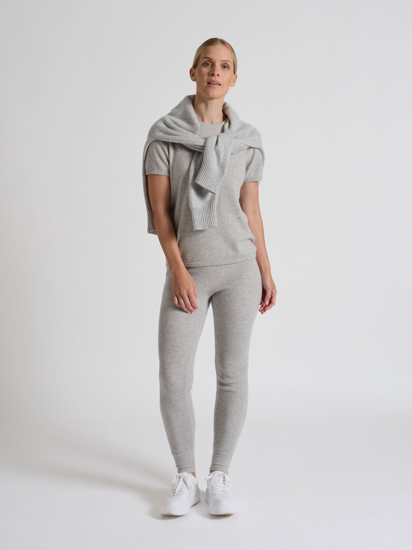 Rib knitted tights/leggings with perfect fit in 100% cashmere.